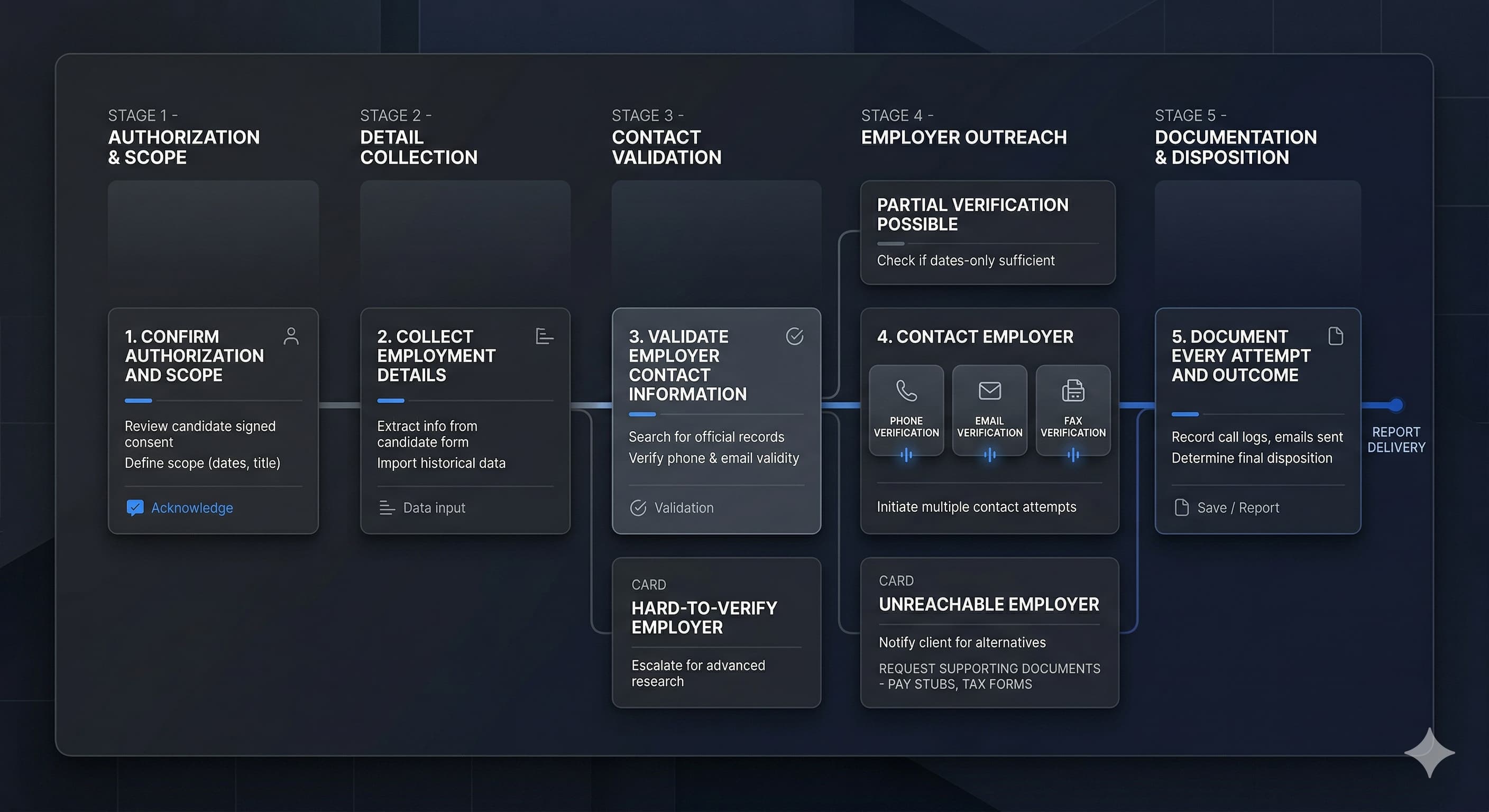 Step-by-step manual employment verification workflow